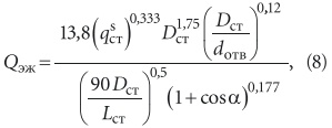 где Qэж — эжектирующая способность стоков, т.е. расход воздуха, увлекаемого в стояк движущейся в нем сверху вниз жидкостью, м3/с:
