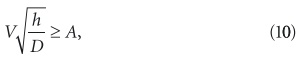 где V — средняя скорость движения стоков, м/с; h — заполнение трубопровода, мм; D — расчетный (внутренний) диаметр трубопровода, мм; A — параметр, учитывающий аккумулирующую способность горизонтального самотечного канализационного трубопровода и свойства материала труб — A = 0,5 для полимерных труб и A = 0,6 для труб из других материалов. При этом V ≥ 0,7 м/с, а наполнение h/D ≥ 0,3.