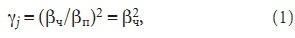 где βчи βп— отношение скоростей при частичном и полном наполнениях (βп= 1). Соотношение кинетических энергий потоков стоков при новом и старом наполнениях определяются по формуле