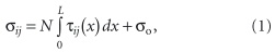 где N — фактор, учитывающий геометрию трубы, см–1; τij — касательные напряжения на поверхности трубопровода в iй точке по окружности в jм сечении, кгс/см2; x — расстояние от сечения с нулевым термическим напряжением до сечения, в котором определяются напряжения, см; σo — постоянная интегрирования, кгс/см2.