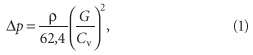 где: Δp — падение давления (psi — фунт на квадратный дюйм); ρ — плотность жидкости (при средних температурах в системе), фунты/фт3; G — расход, галлон/мин; Cv — коэффициент расхода клапана, галлон/мин Значение Cv клапанов данного размера может отличаться в зависимости от диаметра седла клапана.