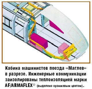Новая транспортная технология требует меньше энергии, чем обычная железнодорожная перевозка по рельсам, гораздо быстрее, безопаснее, комфортнее и значительно тише, так как поезд "Маглев" физически не соприкасается с полотном, не имеет колес, осей и трансмиссии. Запуск первой коммерческой линии Трансрапид ознаменовал новую эру в развитии железнодорожного транспорта, и компания "АРМАСЕЛЛ" гордится своей сопричастностью с передовыми научными разработками и тем, что профессионалы выбирают именно AF/ARMAFLEX(r)!