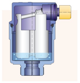 Малогабаритный автоматический воздухоотводчик (код 2042) имеет рабочую температуру теплоносителя 160 °C, и допустимое дифференциальное давление 5 атм. Воздухоотводчик SolarFAR может работать как на воде, так и на воде с гликолем. Принцип его действия состоит в том, что отверстие для выпуска воздуха открывается наклоном закрывающей его гибкой диафрагмы, расположенной на торце рычага, отклоняемого управляющим поплавком.