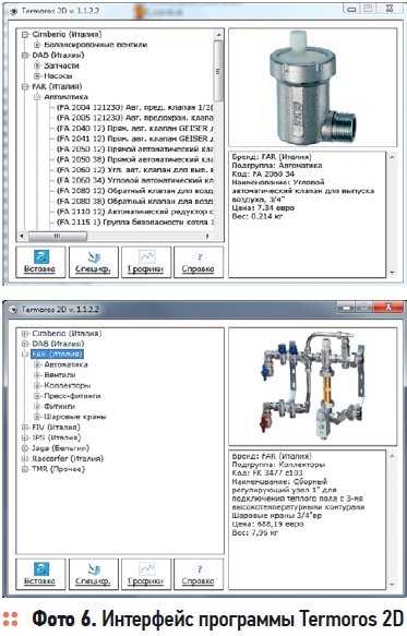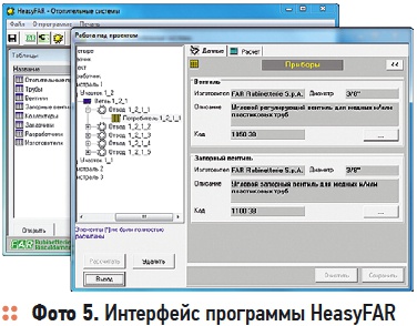 Наиболее полно ассортимент арматуры FAR отражен в программе HeasyFAR, разработанной заводом FAR при участии специалистов «Терморос» (фото 5). Программа является очень удобным средством для расчета гидравлических характеристик всех элементов отопительной системы и подбора под рассчитанные температуры теплоносителя в ветвях типоразмеров отопительных приборов. База программы содержит все виды трубопроводов и типов секционных отопительных приборов различных производителей.