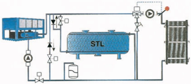 - С помощью системы STL возможно увеличить производство холода, используя уже установленные водоохладительные агрегаты.