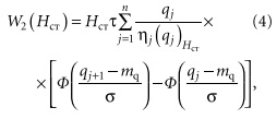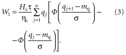 где — интервал времени, за который определяется энергопотребление; Hc — постоянный напор, м водн. ст.; j — индекс итерации под знаком суммы; — интегральная функция нормального распределения (значения приводятся в таблицах для нормированной случайной величины, выраженной в кратностях среднеквадратического отклонения), qj+1 – qj = q — шаг итерации; n — число шагов в интервале [0; Qmax]; hc — КПД насосного агрегата в рабочей точке, определяемой постоянным уровнем воды в башне.