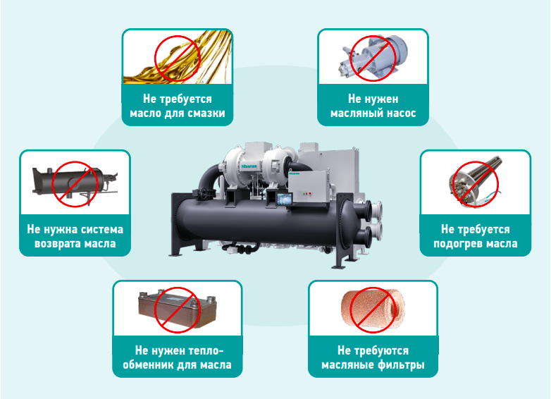 Рис. 11. Преимущества безмасляной системы чиллеров Hisense серии Hi-Levi S