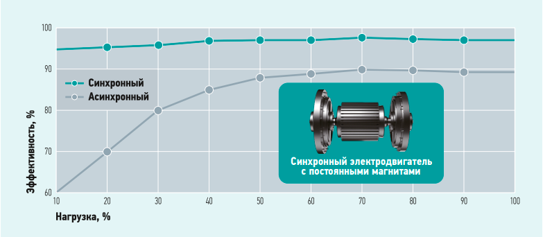 Рис. 4. Сравнение эффективности синхронного и асинхронного электродвигателей