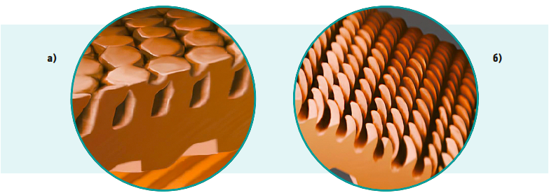 Рис. 5. Теплообменные трубки с улучшенным теплоотводом сотового (а) и оребрённого (б) типов