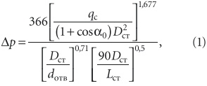 Величину Δp необходимо принимать в соответствии с п. 4.5.2 СП 40102–2000, а именно: «…допустимая величина разрежения в вентилируемых и невентилируемых канализационных стояках не должна превышать 0,9hз, где hз — высота наименьшего из гидравлических затворов санитарно-технических приборов, присоединенных к канализационному стояку…».Допустим, например, что минимальная высота гидрозатвора в проектируемой системе канализации будет равна 40 мм. В этом случае, для определения максимально допустимого расхода стоков по формуле (1), принимаем:Δp = 0,9hз = 0,9×40 = 36 мм.