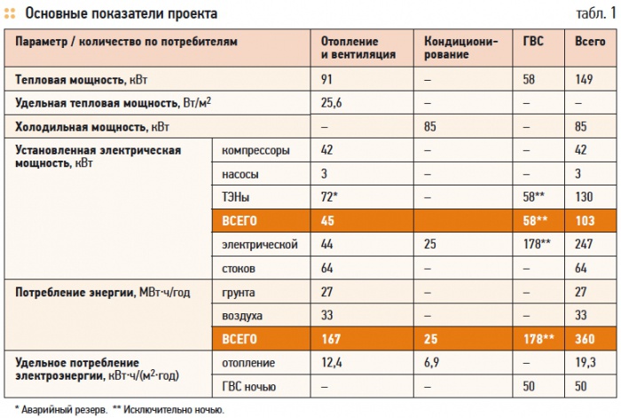 В результате всех предусмотренных проектом мер по теплозащите здания, удельные, отнесенные к одному квадратному метру отапливаемой площади, значения тепловой мощности системы отопления и расхода электрической энергии на отопление за год не должны превышать расчетных величин 25,6 Вт/м2 и 12,4 кВт⋅ч/(м2⋅год). Эти показатели (табл. 1) находятся в ряду соответствующих показателей наиболее эффективных жилых домов, построенных в Европе за последние годы.