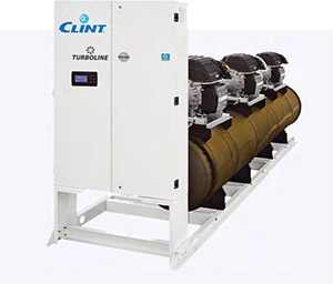 Чиллеры серии Turboline созданы на базе двухступенчатых центробежных компрессоров Turbocor с магнитными подшипниками. Из-за полного отсутствия механического трения и масла в компрессоре (технология Oil Free), которое не оседает на стенках теплообменников холодильного контура, холодопроизводительность агрегата увеличивается на 15 % в сравнении с традиционными чиллерами на винтовых компрессорах, кроме того, увеличивается и срок службы. За счет инверторной системы управления компрессоры имеют чрезвычайно низкие пусковые токи (менее 5 A на один компрессор), которые стартуют поочередно. Сочетание всех перечисленных возможностей позволяет отнести чиллеры Turboline к классу «А» энергоэффективности. Чиллеры имеют высокие показатели энергоэффективности при частичных загрузках компрессоров и оптимально подходят для систем кондиционирования промышленного назначения с изменяемыми тепловыми нагрузками, где необходима высокая точность поддержания температуры холодоносителя без колебаний температуры. Благодаря магнитной технологии подвеса турбины компрессора чиллеры серии Turboline имеют наилучший показатель звукового давления и вибрации. Стоимость агрегатов серии Turboline несколько выше стоимости аналогов на винтовых компрессорах. Однако разница в цене окупается за счет снижения эксплуатационных расходов (стоимость потребляемой электроэнергии, расходы на обслуживание ниже на 35 %), которые в целом ниже, чем у аналогов на винтовых компрессорах на 50 %. Окупаемость первоначальных затрат составляет примерно четыре года.