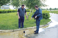 Для того чтобы избежать этой проблемы, необходимо произвести предварительное обследование места предполагаемой утечки. Обследование проводят специальным кабелеискателем либо трассоискателем с расширенными функциями. Такими возможностями обладают приборы: течеискатель с функцией пассивного поиска кабеля «Успех-АТП-204», трассоискатель «Успех АГ-208», течетрассоискатель «Успех АТГ-209». Наиболее удобным и дешевым решением необходимо признать создание комплексного прибора типа течетрассоискателя «Успех АТГ-209». Использование унифицированного электронного блока и набора специализированных датчиков позволяет использовать тот же прибор как для поиска утечек воды, так и для трассировки трубопровода и кабелей.