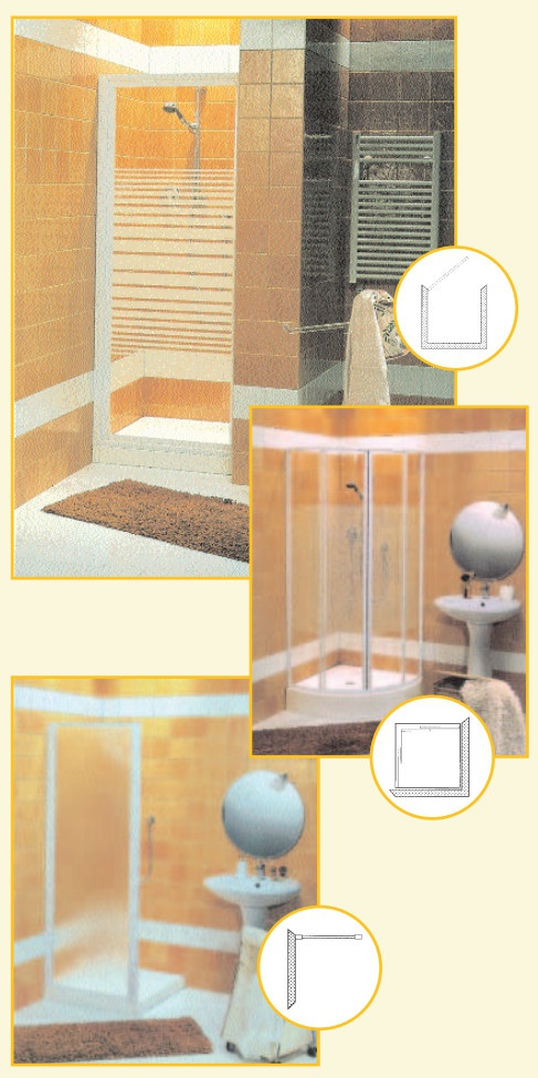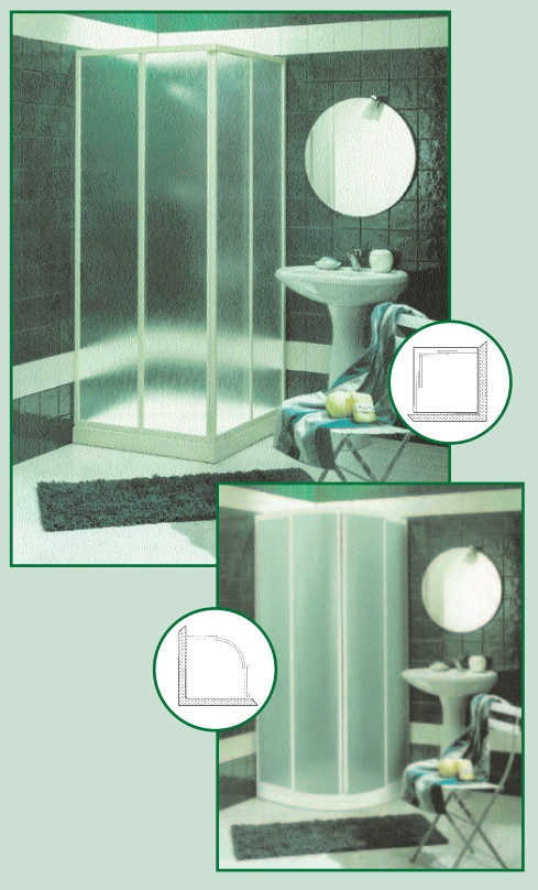 По способу раскрывания различают раздвижные и распашные двери. Распашные двери могут быть одно- и двухстворчатыми. Они требуют большей площади ванной комнаты. Раздвижные двери бывают двух и четырех створчатые, трех и шестистворчатые. В закрытом виде их удерживает магнитная резиновая лента. Чем больше створок, тем меньше места внутри кабины, но, в то же время, прочнее каркас. Двигаются такие двери на роликах, которые должны быть спрятаны внутрь каркаса, чтобы к ним не проникла вода. Самые лучшие двери открываются и закрываются бесшумно. Фирма «Huppe» была разработчиком первой бескаркасной раздвижной двери, а также первого кругового экрана для ванн. Она же впервые предложила вариант распашно-раздвижной двери.