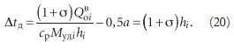 С повышением точности поддержания температуры воздуха (∆tд→0) необходимо увеличивать массу воздуха, вносимую струей в рабочую зону (Мрзi→∞). Количество холода, которое должна внести приточная струя в рабочую зону, по отношению к температурному уровню tрз составляет Qрзi = 0,5Qрзi . Раскрыв в (22) Мудi, после преобразований получаем: