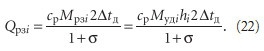 С данной средней избыточной температурой приточной струей в рабочую зону вносится масса воздуха, равная Мрзi =Mудihi. Эта масса воздуха ассимилирует выделяющееся в рабочей зоне тепло Qрзi и выходит из рабочей зоны со средней температурой tpз + ∆tд/(1 + σ):