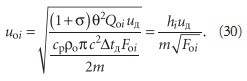Из выражений (29–31) следует, что при расположении приточного отверстия на расстоянии от рабочей зоны hi скорость истечения воздуха из приточного отверстия uo, количество приточного воздуха Voi и температура приточного воздуха однозначно определяются площадью выходного отверстия Foi. Если подставить выражение (29) для Foi в зависимости (30–31), то получаем, что при данной температуре приточного воздуха площадь выходного сечения приточного устройства, количество приточного воздуха, скорость его истечения определяются тепловыделениями в рабочей и верхней зонах, а также требованиями, предъявляемыми к параметрам воздуха в рабочей зоне.
