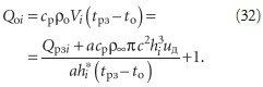 Как указывалось, приточная струя в рабочую зону должна внести тепловую энергию (холод) в количестве, равном тепловыделениям в обслуживаемой струей зоне Qрз. Из уравнения (14) получаем, что первоначальный тепловой импульс струи, отнесенный к температуре окружающей среды на уровне выходного отверстия, равен: