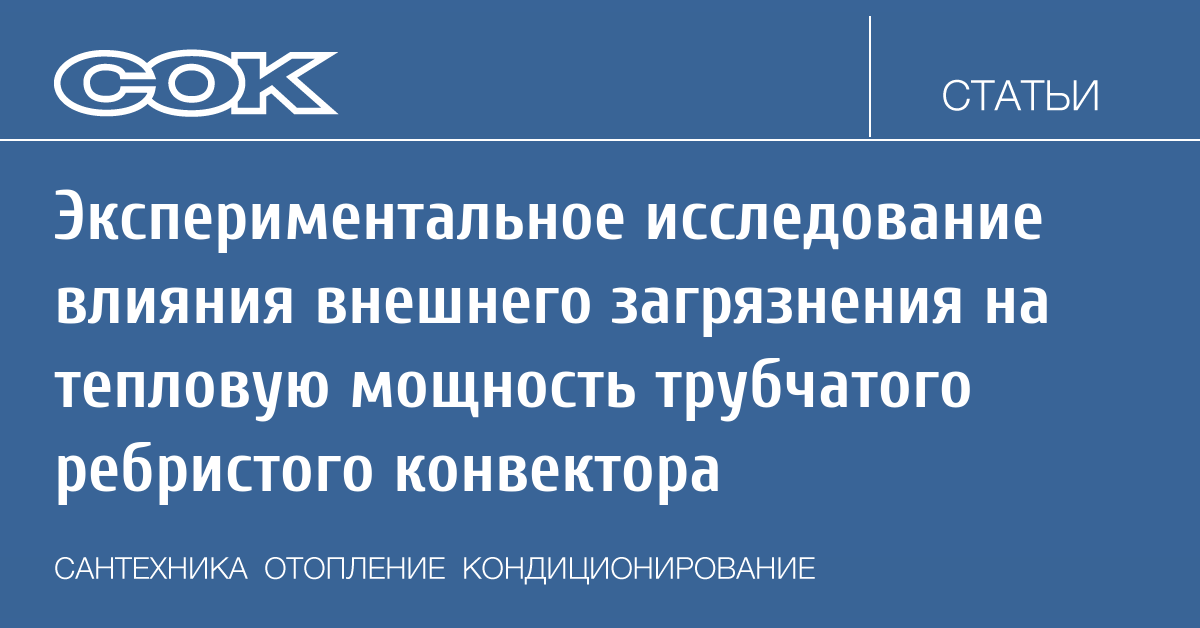 В ходе исследования авторами обнаружено, что при естественной конвекции в трубах с тесным расположением рёбер загрязнение межрёберного пространства у основания оребрения не приводит к существенному снижению тепловой мощности (менее 10%), а ухудшение теплоотдающих свойств трубы происходит только при загрязнении верхушек оребрения (на 20,5%). Температура по высоте боковой поверхности ребра уменьшается незначительно (менее 2%), а на верхушке ребра по отношению к основанию — на 6–9%. Следовательно, при эксплуатации ребристых конвекторов систем отопления не обязательна их частая и тщательная очистка от загрязнений.
