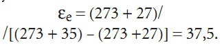 Определим эксергетический холодильный коэффициент для температурных параметров систем кондиционирования воздуха. Стандартные температурные условия испытания кондиционеров: температура внутреннего воздуха 27°С, температура наружного воздуха 35°С.Отсюда:
