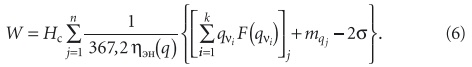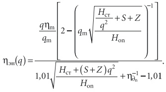 где hm — максимальное значение КПД, приводимое в каталоге; qm — расход, соответствующий максимальному КПД; ηдn — каталожное значение КПД электродвигателя. Остальные параметры определены выше. Случайный характер расхода учтем, воспользовавшись его математической моделью, полученной ранее, и введя обозначения для случайной составляющей qv(t)и детерминированной qM(t):