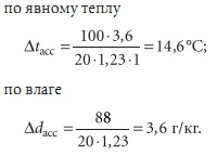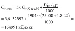 - по влагеWвл.асс. П = 8640 × 1,22 ×× (10 – 8,2) = 18 973 г/ч.
