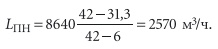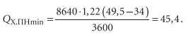 Это меньше требуемого по санитарной норме LПНmin = 2160 м3/ч. В калорифере при подаче в трубки горячей воды минимальная температура нагрева воздуха принимается tКУ = 5 °C, что отвечает энтальпии IКУ = 6 кДж/кг. В этом режиме расход в смеси приточного наружного воздуха будет: