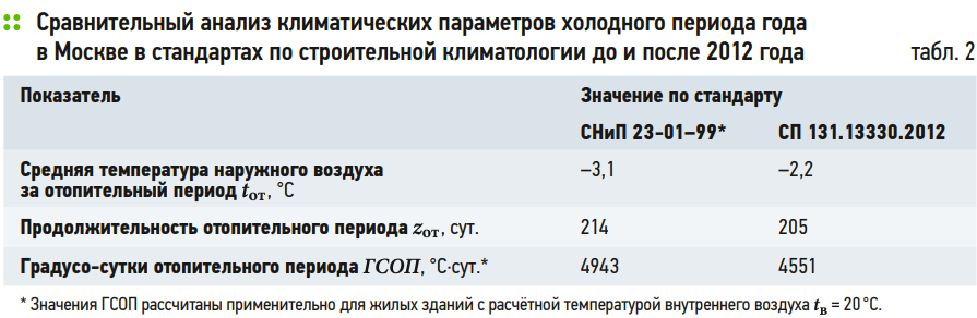 Сначала это произошло благодаря изменению климатических показателей в своде правил по строительной климатологии СП 131.13330.2012, от принятых значений которых рассчитывается показатель градусо-суток отопительного периода:
