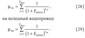 где Сэлгв и Сэлхв — годовые затраты на электроэнергию для преодоления потерь напора в горячем и холодном водопроводах; μгв, μхв — коэффициенты приведения к одному сроку разновременных затрат на горячий водопровод:на холодный водопровод: