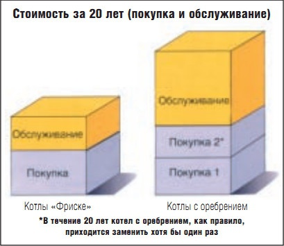 2. Более долгий срок службы — средний срок службы котлов Фриске в два раза дольше, чем у котлов с оребрением.