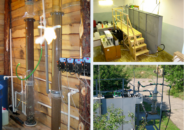 Моделирование процесса очистки воды по традиционной или усовершенствованной технологии в натурных условиях осуществляется на различных экспериментальных установках и стендах (фото 1), представляющих собой взаимосвязанные узлы и блоки, оснащённые запорно-регулирующей арматурой, приборами, оборудованием и соединительными трубопроводами. Аналогичный подход используется и при исследовании других процессов, например, транспортирующей способности потоков, гидравлических характеристик трубопроводов с различными покрытиями и пр. [4].