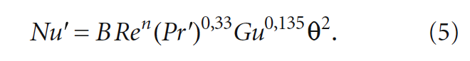 Диффузионный критерий Нуссельта Nu´ вычисляется для условия вынужденной конвекции по формуле:
