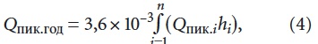 где Gсв — расход сетевой воды в сети, кг/с; ср = 4,187 кДж/(кг⋅°C) — теплоемкость воды. Годовой отпуск теплоты Qпик.год [ГДж], пиковыми источниками теплоты равен:
