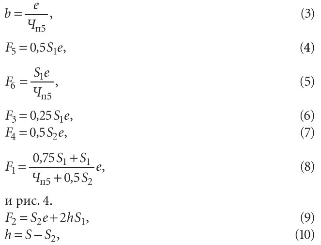 Площади сечений единичных гофр рассчитывались по формулам, обозначения в которых соответствуют рис. 3.