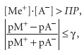 где [Мe+]— концентрация кристаллообразующего иона металла; [A–]— концентрация кристаллообразующего иона слабой кислоты или основания; ПР — произведение растворимости; pM+ = –lg([М+]), pA– = –lg([A–]); γ— параметр модели. Это та зона, в которой зарождаютсяи растут кристаллы в гелях. Размер ЗАР зависит от концентрации исходных реагентов и кислотности среды. Варьируя этими двумя параметрами, т.е. влияя на ЗАР, удается управлять зародышеобразованием и ростом кристаллов в гелях.