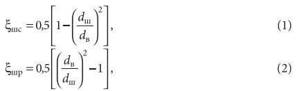 Значения коэффициента местного сопротивления соединения с выступами, образующими диафрагму сд, получены интерполяцией и экстраполяцией данных (табл. 1) для конкретных значений dш и dв [6].