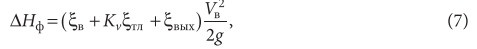 При определении потерь напора по формуле Вейсбаха на местном сопротивлении фитинга также учтено изменение скорости движения по фитингу соответствующим коэффициентом (табл. 7), который определялся по формуле: