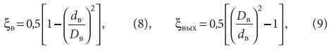 Значения ξв (табл. 8) и ξвы (табл. 9) определены для Dв и dв, указанных в табл. 6, по формулам