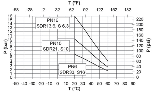 Система из НПВХ с клеевым соединением может использоваться при t от 0 до 60 °C, для транспортировки, распределения и дозирования различных химикатов, воды, в т.ч. питьевой, а также в пищевой, фармацевтической и косметической отраслях промышленности, на химических производствах, предприятиях по водоподготовке и очистке сточных вод, в бассейнах. Максимальное допустимое давление: для труб Ø< 250 мм — 16 бар, для Ø= 250–355 мм — 10 бар, для Ø= 355–400 мм — 6 бар.