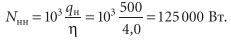 Электрическую мощность двигателя теплового насоса Nнн определим, исходя из заданной минимальной величины коэффициента преобразования = 4,0: