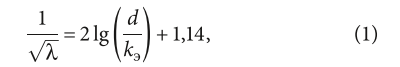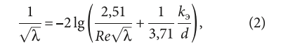 Коэффициенты эквивалентной шероховатости определялись по альтернативным методикам и формулам, в частности, Прандтля (1) и Кольбрука-Уайта (2):