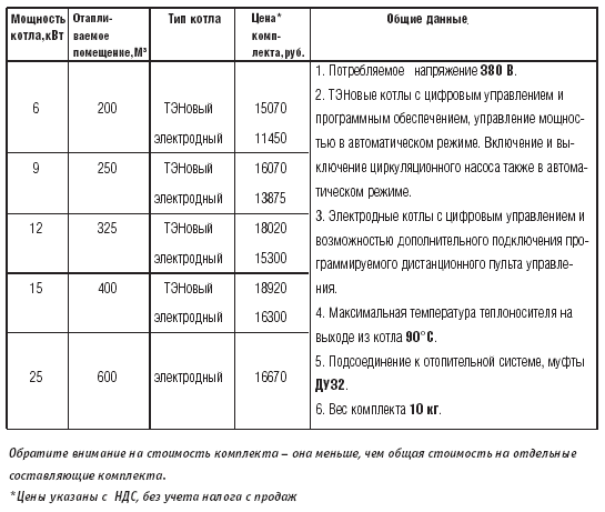Итальянский трехскоростной насос фирмы DAB производительностью до 5м3/час и высотой подъема теплоносителя до 6,5 м, также входящий в комплект «BERIL», позволяет быстро и без потерь доставить тепло к самому отдаленному радиатору отопительной системы. Электрокотлы выпускаются мощностью от 6 до 25 кВт и потребитель, приобретая комплект «BERIL», сможет обогреть помещение площадью до 250 м2. Вес комплекта 10 кг.