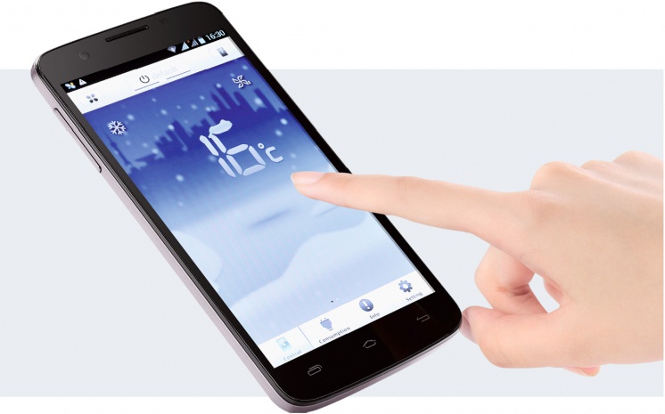 Функция управления с помощью Wi-Fi позволяет пользователю, находясь на значительном удалении от места установки кондиционера, включать и выключать кондиционер, менять температуру, изменять угол наклона воздушных жалюзи, а также осуществлять другие функции. Загрузив программу Wi-Fi Smart, можно «общаться» с кондиционером и задавать нужный режим его работы. И к моменту вашего приезда домой или в офис параметры воздушной среды в кондиционируемых помещениях будут соответствовать требуемым условиям.