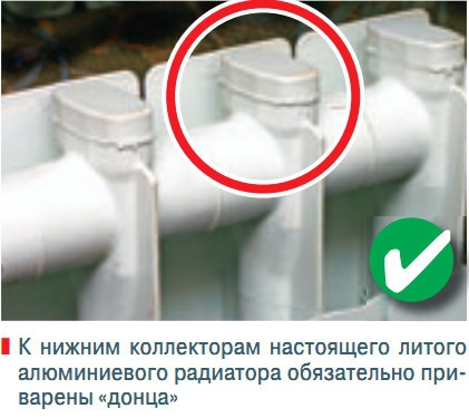 Заглушки . О том, что радиатор изготовлен методом литья под давлением, свидетельствует наличие в его нижней части следов от заглушек, приваренных после того, как заготовка отлита. У экструдированных изделий их, понятное дело, нет, а наблюдаются цельные «ножки» — их функция исключительно декоративная.