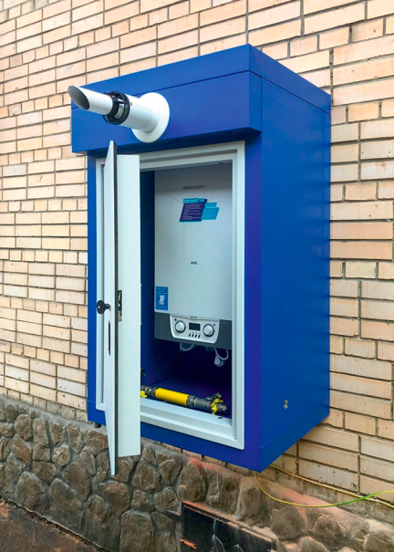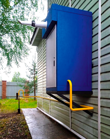 - наружное размещение — газовый контур размещён снаружи дома, что исключает утечку газа в помещениях;