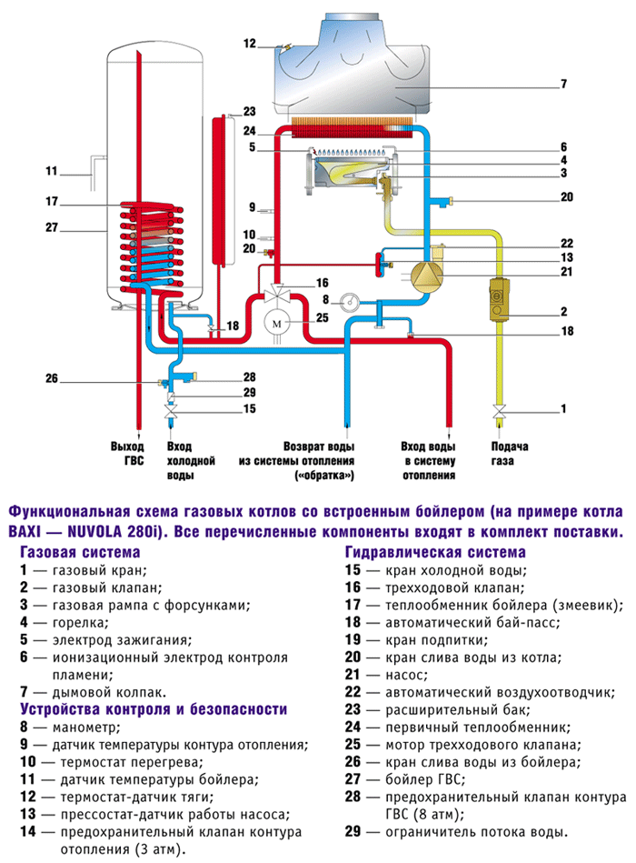Это означает, что такие котлы можно использовать одновременно для нескольких точек потребления. Например: Вы имеете котел BAXI, модель NUVOLA 280 Fi.