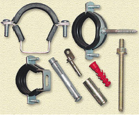 Для монтажа воздуховодов: подвесные части L, Z и V, хомуты для воздуховодов. Системы инсталляции и монтажные рамы для навесной сантехники фирм Viega и Schwap (подробнее об этом писалось в "С.О.К." №4 2003 г.). Характерной особенностью таких систем является гибкость монтажа, что дает возможность за краткий срок и вне зависимости от подключений, по-новому и интересно решить планировку сантехнических помещений.