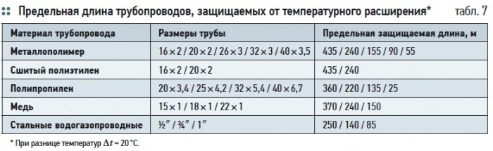 Здесь-то и потребуется вторая функция мембранного гасителя гидроударов. Приняв в себя часть воды из нагревающегося трубопровода, он избавит его от чрезмерной нагрузки и поможет избежать аварийной ситуации. В табл. 7 приведены предельные длины трубопроводов, защищаемые гасителем CAR-19 от температурного расширения жидкости.