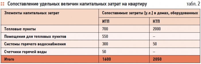 Эти факторы в значительной мере компенсируют инвестору его дополнительные затраты на устройство КТП (табл. 2). Таким образом, удорожание строительства, связанное с устройством КТП вместо ИТП, оценивается примерно в 450 у.е. на одну квартиру. При площади квартиры 80 м2 это составляет примерно 5,5 у.е/м2 или около 0,25 %.