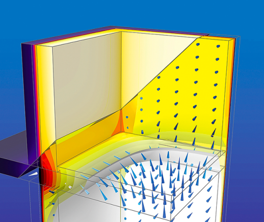 Предложенная методика определения теплои влагосостояния ограждающих конструкций реализована через программный комплекс MATLAB Simulink в COMSOL Multiphysics [1]. Программное обеспечение COMSOL Multiphysics успешно реализует модель теплового моста с созданием точных моделей узлов, генерацией расчётной сетки и достижением заданной точности результатов [2–6].
